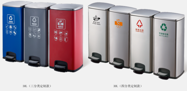【功能和性能】垃圾分類。具有色澤亮麗美觀,并具有環保、防潮、防腐防銹、易清理、靜音緩降、密封防臭等特點。